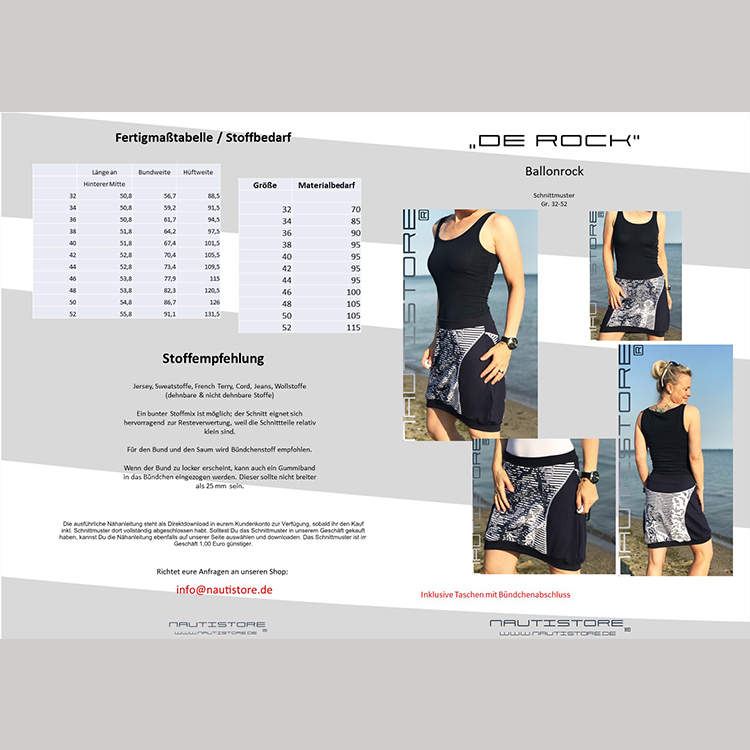 Papierschnittmuster in den Größen 32-52, Ballonrock mit Teilungsoptionen